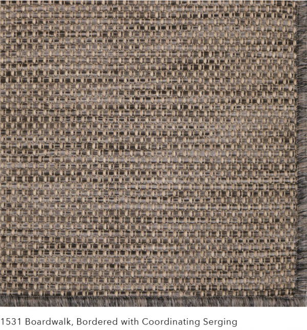 The Boardwalk Collection from Fibreworks gives you the look of a natural fiber area rug but can be used indoors or outdoors due to its synthetic construction. Brighten up your pool deck or patio area with these beautiful UV and mildew resistant outdoor area rug collections at Georgia Mills!